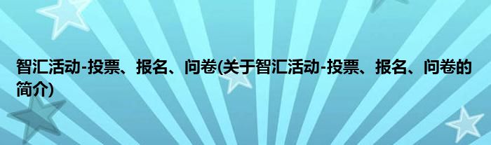 本文关于智汇活动-投票、报名、问卷的简介就讲解完毕,希望对大家有所帮助。