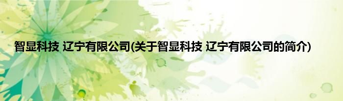 大家好,智显科技 辽宁有限公司,关于智显科技 辽宁有限公司的简介很多人还不知道,现在让我们一起来看看吧!