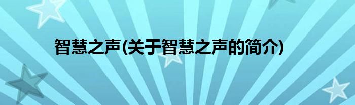 大家好,智慧之声,关于智慧之声的简介很多人还不知道,现在让我们一起来看看吧!