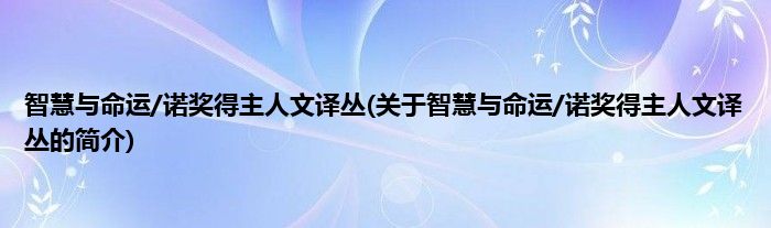 本文关于智慧与命运/诺奖得主人文译丛的简介就讲解完毕,希望对大家有所帮助。