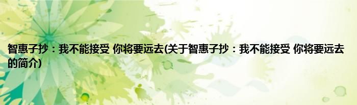 本文关于智惠子抄:我不能接受,你将要远去的简介就讲解完毕,希望对大家有所帮助。
