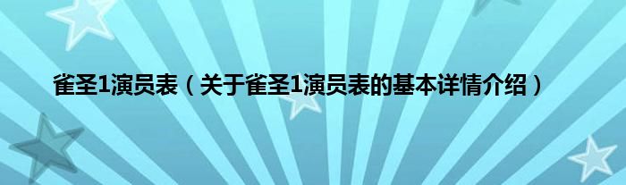 雀圣1演员表(关于雀圣1演员表的基本详情介绍)