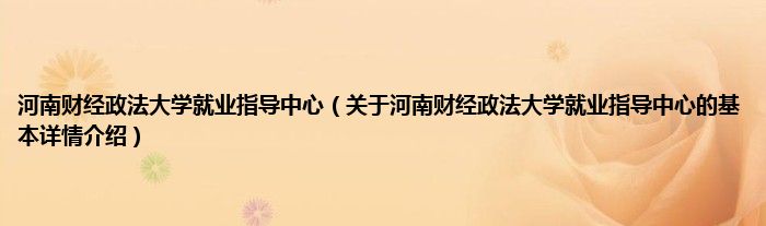 本文关于河南财经政法大学就业指导中心的基本详情介绍就讲解完毕,希望对大家有所帮助。