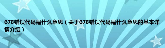 本文关于678错误代码是什么意思的基本详情介绍就讲解完毕,希望对大家有所帮助。