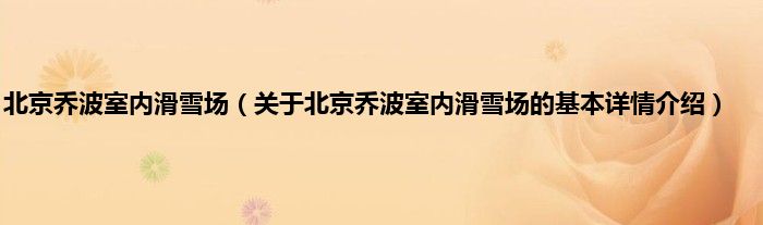 本文关于北京乔波室内滑雪场的基本详情介绍就讲解完毕,希望对大家有所帮助。