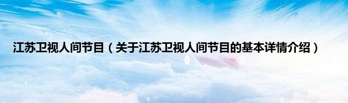 本文关于江苏卫视人间节目的基本详情介绍就讲解完毕,希望对大家有所帮助。