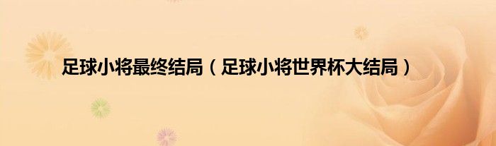 大家好,小问来为大家解答以上问题。足球小将最终结局,足球小将世界杯大结局这个很多人还不知道,现在让我们一起来看看吧!