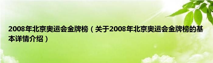本文关于2008年北京奥运会金牌榜的基本详情介绍就讲解完毕,希望对大家有所帮助。