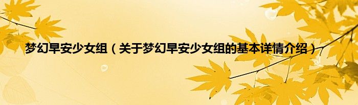本文关于梦幻早安少女组的基本详情介绍就讲解完毕,希望对大家有所帮助。
