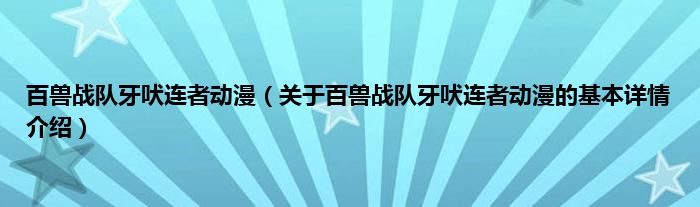 百兽战队牙吠连者动漫(关于百兽战队牙吠连者动漫的基本详情介绍)