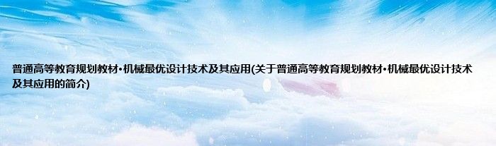 本文关于普通高等教育规划教材·机械最优设计技术及其应用的简介就讲解完毕,希望对大家有所帮助。
