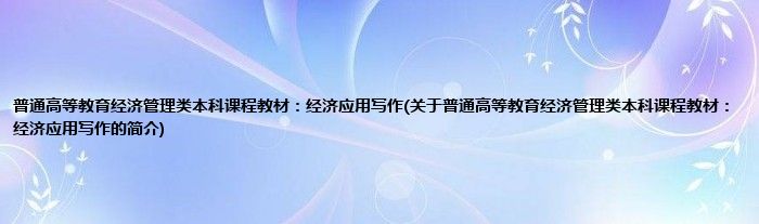 本文关于普通高等教育经济管理类本科课程教材:经济应用写作的简介就讲解完毕,希望对大家有所帮助。