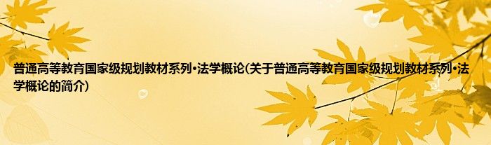 最佳答案大家好,普通高等教育国家级规划教材系列·法学概论,关于普通高等教育国家级规划教材系列·法学概论的简介很多人还不知道,现在让我们一起来看看吧! 1、 《普通高等教育国家级规划教材系列·法学概论》是2007年9月1日法律出版社出版的图书。2、本书以我国近期的立法和理论研究成果为基础,内容新...