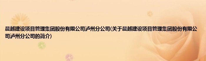 晨越建设项目管理集团股份有限公司泸州分公司(关于晨越建设项目管理集团股份有限公司泸州分公司的简介)