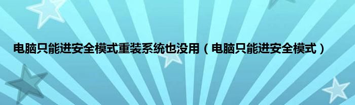 大家好,小问来为大家解答以上问题。电脑只能进安全模式重装系统也没用,电脑只能进安全模式这个很多人还不知道,现在让我们一起来看看吧!