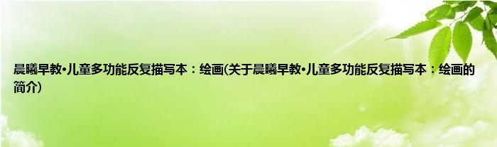 本文关于晨曦早教·儿童多功能反复描写本:绘画的简介就讲解完毕,希望对大家有所帮助。