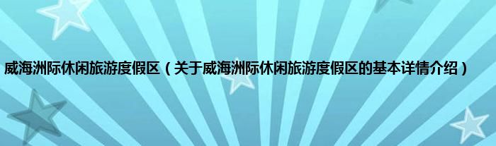 本文关于威海洲际休闲旅游度假区的基本详情介绍就讲解完毕,希望对大家有所帮助。