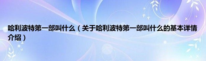 哈利波特第一部叫什么(关于哈利波特第一部叫什么的基本详情介绍)