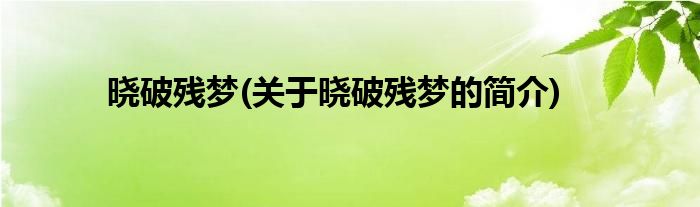 本文关于晓破残梦的简介就讲解完毕,希望对大家有所帮助。