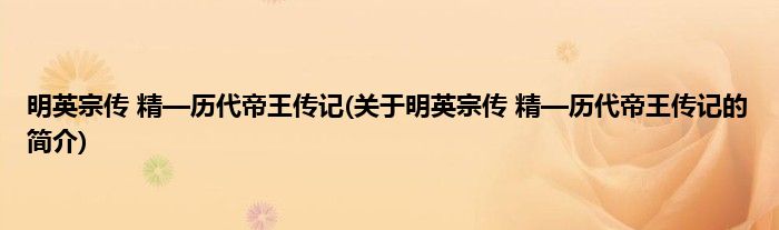 本文关于明英宗传 精—历代帝王传记的简介就讲解完毕,希望对大家有所帮助。