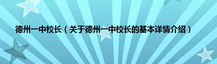 本文关于德州一中校长的基本详情介绍就讲解完毕,希望对大家有所帮助。