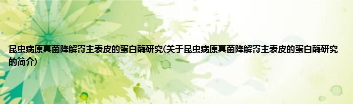 本文关于昆虫病原真菌降解寄主表皮的蛋白酶研究的简介就讲解完毕,希望对大家有所帮助。