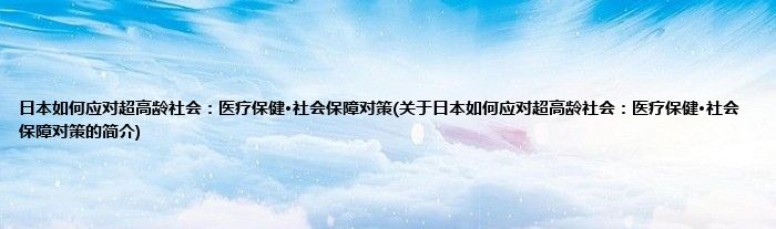 大家好,日本如何应对超高龄社会:医疗保健·社会保障对策,关于日本如何应对超高龄社会:医疗保健·社会保障对策的简介很多人还不知道,现在让我们一起来看看吧!