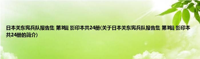 本文关于日本关东宪兵队报告集 第3辑 影印本共24册的简介就讲解完毕,希望对大家有所帮助。