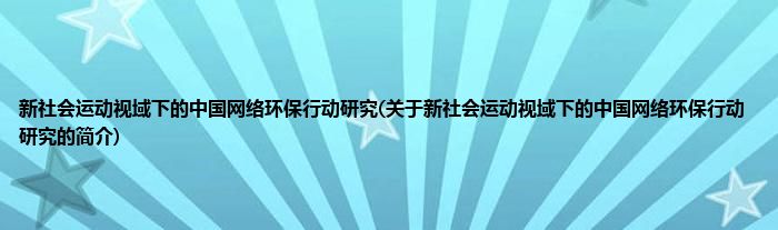 大家好,新社会运动视域下的中国网络环保行动研究,关于新社会运动视域下的中国网络环保行动研究的简介很多人还不知道,现在让我们一起来看看吧!