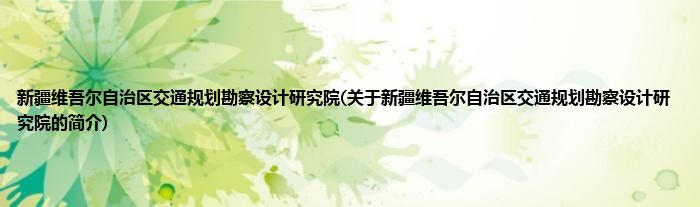 大家好,新疆维吾尔自治区交通规划勘察设计研究院,关于新疆维吾尔自治区交通规划勘察设计研究院的简介很多人还不知道,现在让我们一起来看看吧!