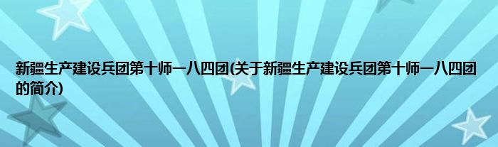 新疆生产建设兵团第十师一八四团(关于新疆生产建设兵团第十师一八四团的简介)