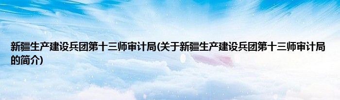 本文关于新疆生产建设兵团第十三师审计局的简介就讲解完毕,希望对大家有所帮助。