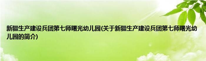 本文关于新疆生产建设兵团第七师曙光幼儿园的简介就讲解完毕,希望对大家有所帮助。