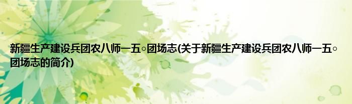 本文关于新疆生产建设兵团农八师一五○团场志的简介就讲解完毕,希望对大家有所帮助。