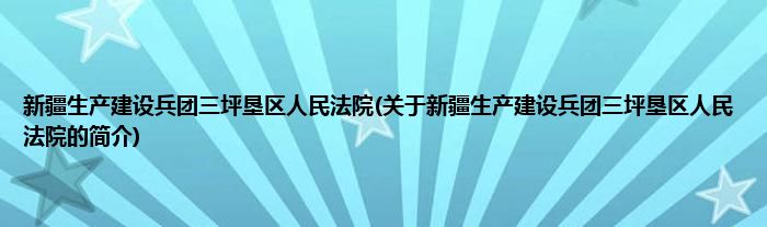 本文关于新疆生产建设兵团三坪垦区人民法院的简介就讲解完毕,希望对大家有所帮助。