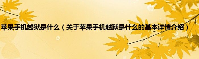 本文关于苹果手机越狱是什么的基本详情介绍就讲解完毕,希望对大家有所帮助。
