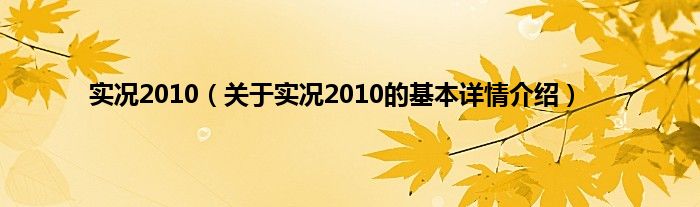 本文关于实况2010的基本详情介绍就讲解完毕,希望对大家有所帮助。