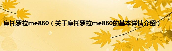 本文关于摩托罗拉me860的基本详情介绍就讲解完毕,希望对大家有所帮助。