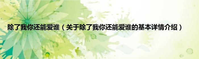 本文关于除了我你还能爱谁的基本详情介绍就讲解完毕,希望对大家有所帮助。