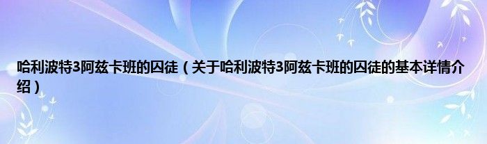 本文关于哈利波特3阿兹卡班的囚徒的基本详情介绍就讲解完毕,希望对大家有所帮助。