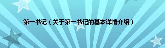 第一书记(关于第一书记的基本详情介绍)