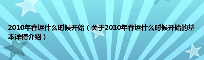 2010年春运什么时候开始(关于2010年春运什么时候开始的基本详情介绍)