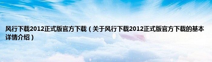 风行下载2012正式版官方下载(关于风行下载2012正式版官方下载的基本详情介绍)