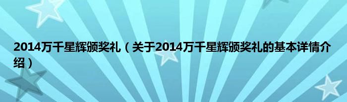 本文关于2014万千星辉颁奖礼的基本详情介绍就讲解完毕,希望对大家有所帮助。