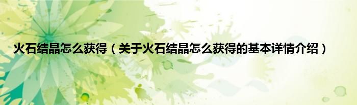 本文关于火石结晶怎么获得的基本详情介绍就讲解完毕,希望对大家有所帮助。
