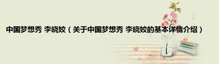 本文关于中国梦想秀 李晓姣的基本详情介绍就讲解完毕,希望对大家有所帮助。