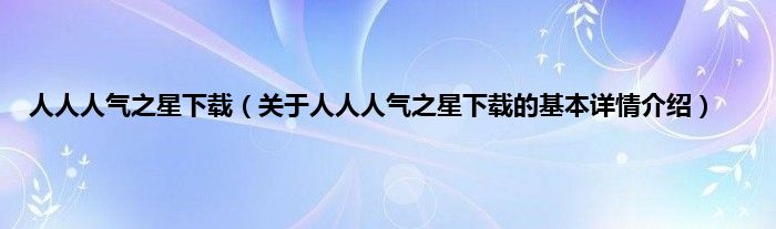 本文关于人人人气之星下载的基本详情介绍就讲解完毕,希望对大家有所帮助。