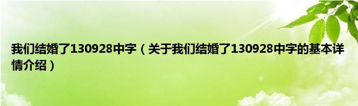 我们结婚了130928中字(关于我们结婚了130928中字的基本详情介绍)