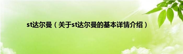 本文关于st达尔曼的基本详情介绍就讲解完毕,希望对大家有所帮助。