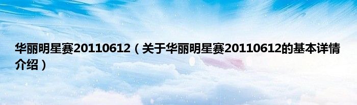 本文关于华丽明星赛20110612的基本详情介绍就讲解完毕,希望对大家有所帮助。